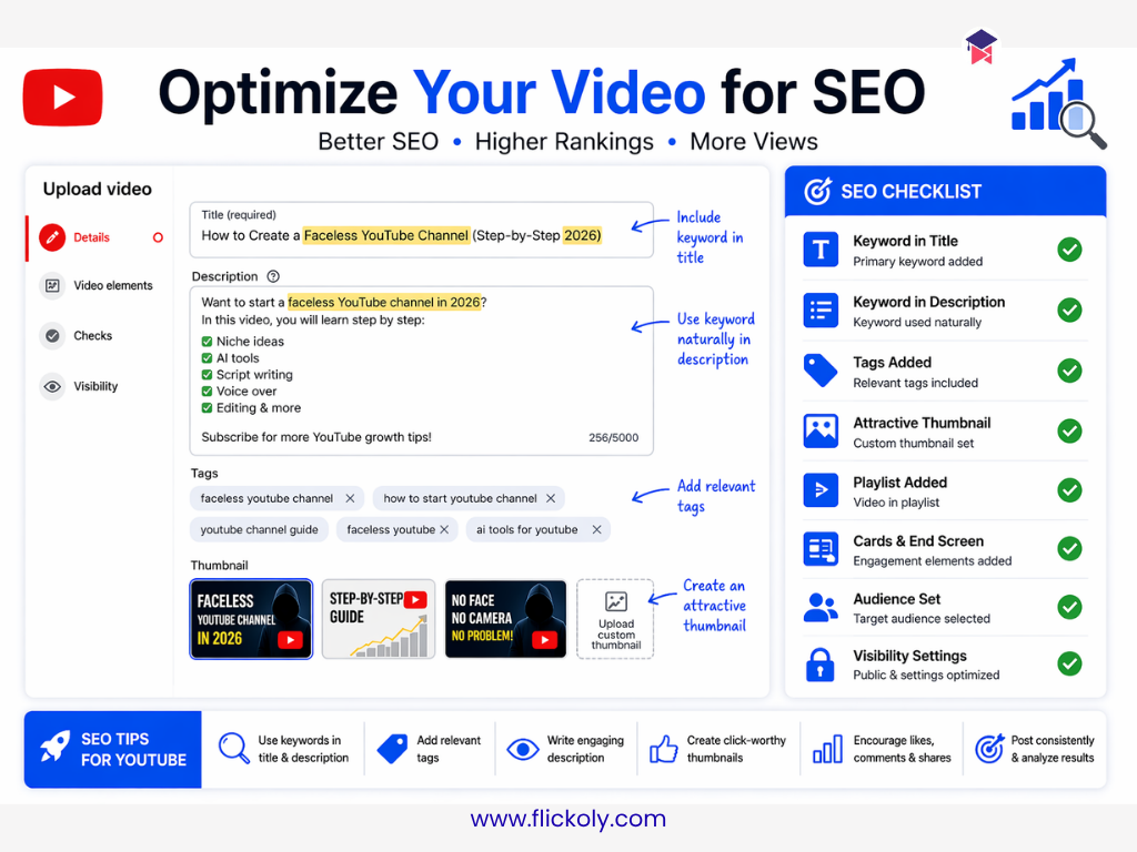 - Write a keyword-rich title (include what people actually search like how to create faceless YouTube channel)